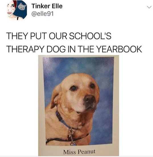 ▼他們將學校的治療犬也收錄進畢業冊當中。