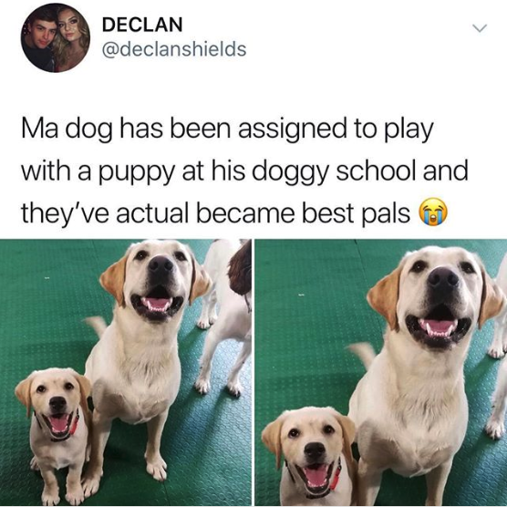 ▼我的狗狗在狗學校被分配到了一隻小狗當做夥伴,如今牠們是最好的朋友!