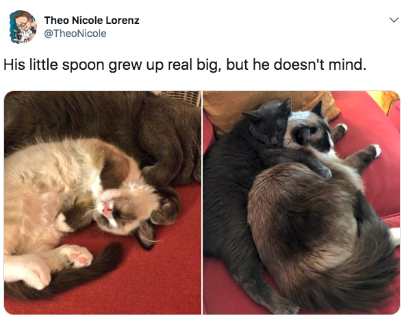 ▼牠懷中的貓咪長大了,可是牠並不介意。
