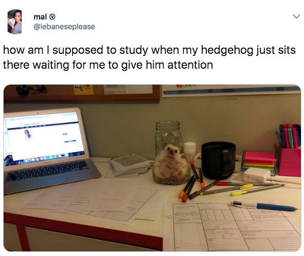 ▼當我家的小刺猬一直在裝可愛吸引關注時,我要怎麼專心學習呢?