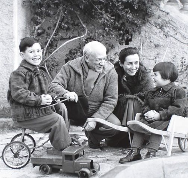 ▼17.1950年代,畢卡索(Pablo Picasso)、弗朗索瓦吉洛(Francoise Gilot)和幾個孩子。