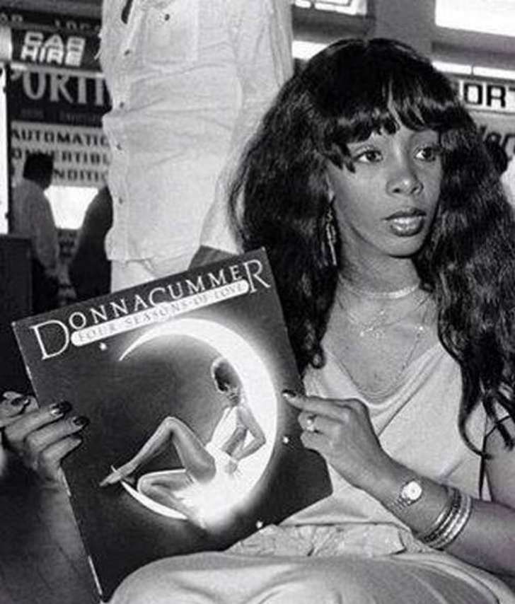 ▼8.1976年,拿著新專輯的唐娜桑默(Donna Summer)。
