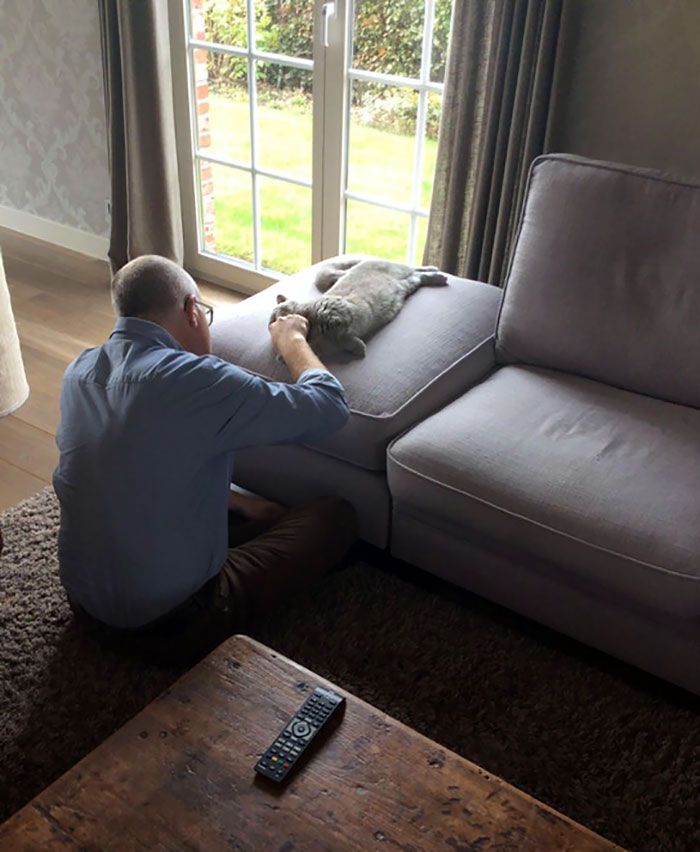▼雖然爸爸不想要養貓,可是看來這隻貓已經將他收編了。