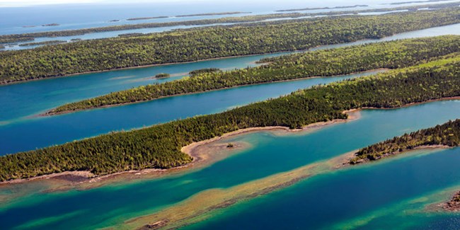 ▼位於密西根州的皇家島因為氣候變遷,過去供狼群來往皇家島與主島間的冰橋融化,導致皇家島內的野狼僅餘個位數。