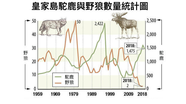 氣候改變會對生態環境造成許多影響,而為了維持生態的平衡,人類就必須做出許多努力。日前就有組織將加拿大野狼空投至位於美國密西根州的皇家島國家公園(Isle Royale National Park),盼能控制當地越來越失控的駝鹿數量。