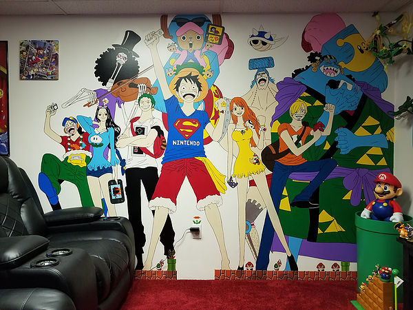 ▼牆壁上有「ONE PIECE」壁畫,主角們的裝扮都是他精心設計的。