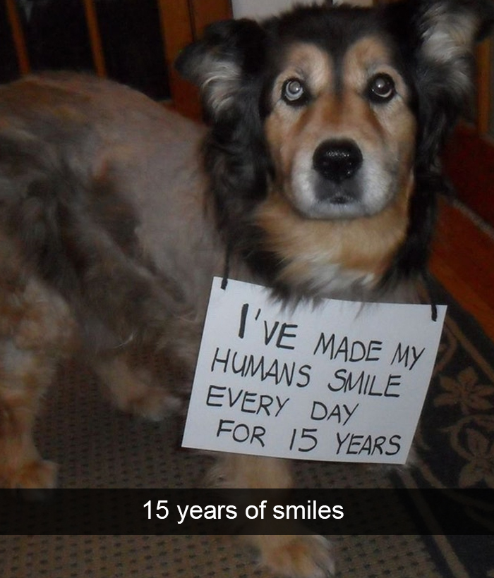 ▼15.🐶:「十五年來,我每天都會逗我的主人開心」