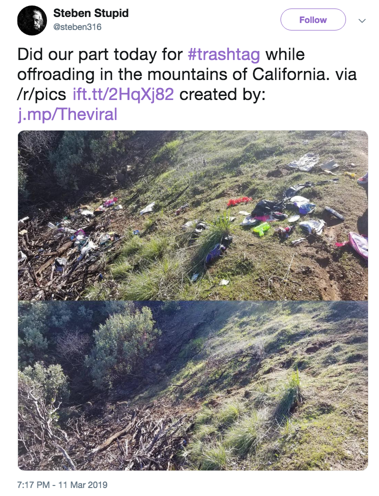 ▼參加「撿垃圾挑戰」的話,上傳對比照、打上「#Trashtag」的標籤就好了。不管你自己撿垃圾,還是和朋友們一起撿垃圾,都沒有問題。公園、沙灘、山林、街道…任何地方都可以挑戰。
