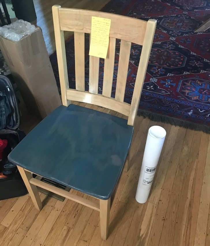 ▼有人撿走了丟棄在屋外的椅子,修理好之後又送回了主人的家中。