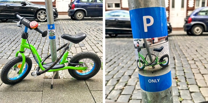 ▼德國有個小孩每天都會將腳踏車停在這裡,於是有人幫他做了一個專屬的停車貼紙。