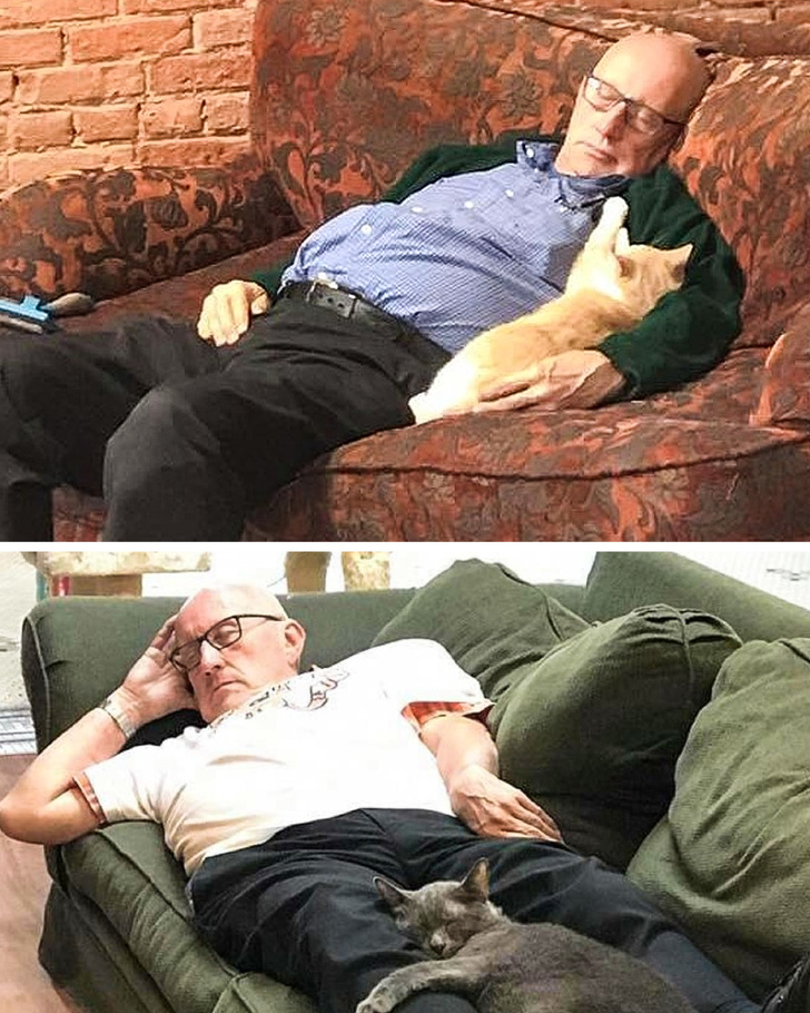 ▼這名老人為了幫動物收容所籌款,拍攝了許多自己與動物共眠的暖心照片。