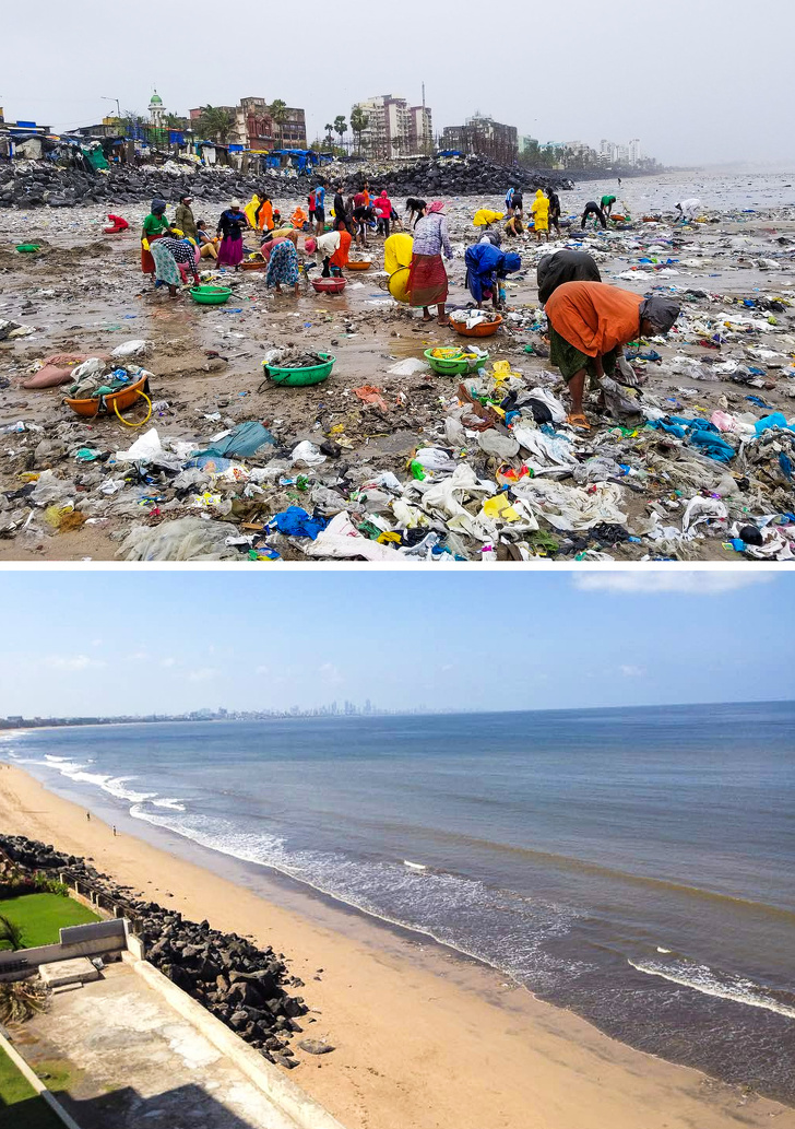 ▼印度的人民自發性的進行凈灘,清理了5噸重的垃圾。