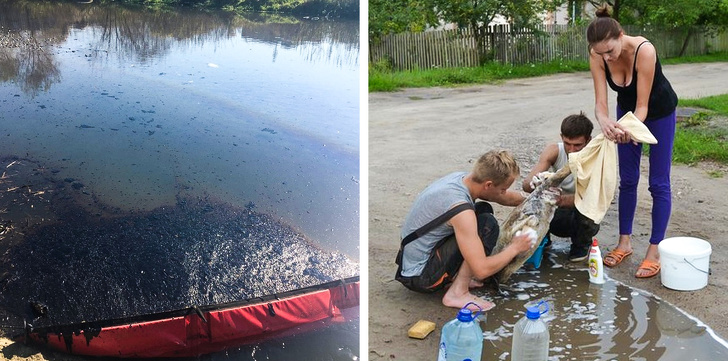 ▼這群人幫助受到漏油事件影響的天鵝,洗淨牠身上的油污。