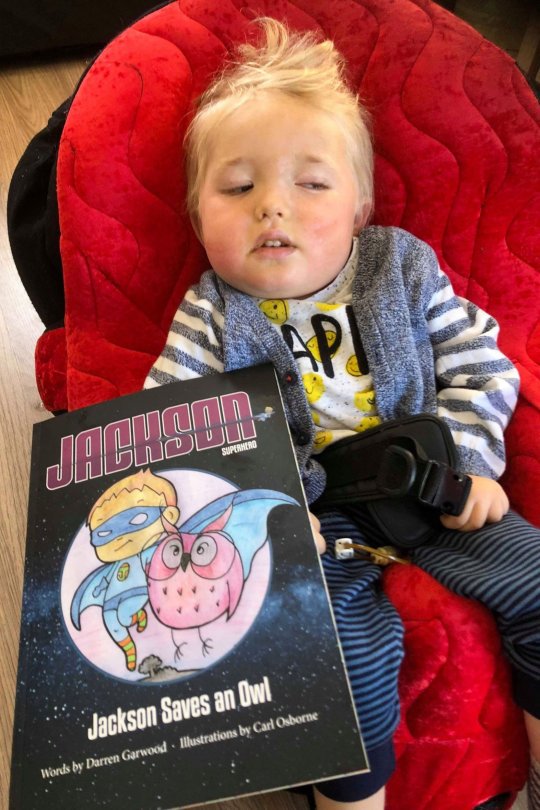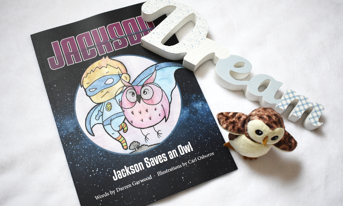 ▼達倫以兒子的名字作為書名,創作出一本名為《傑克森拯救貓頭鷹》(Jackson Saves an Owl)的故事書。