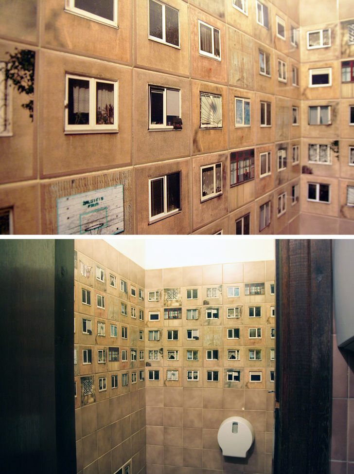 ▼20.牆面的墨鏡正好是洗手台的鏡子,超巧妙的設計。