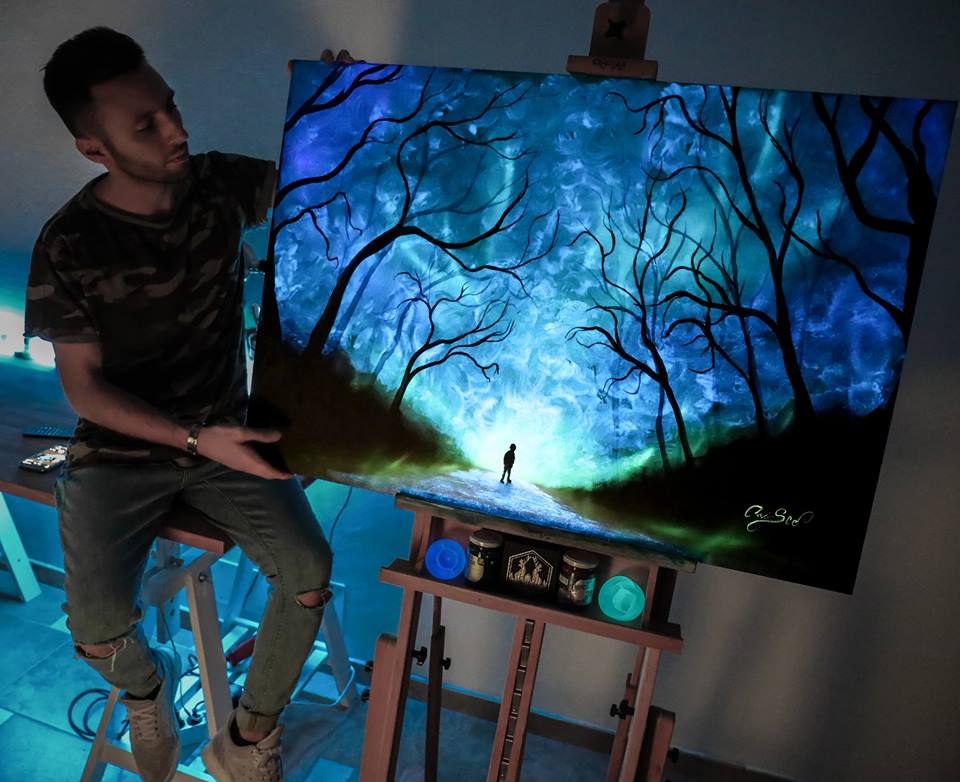 2019年03月13日義大利藝術家Cristoforo Scorpiniti擅長用螢光顏料作畫,他將螢光劑調配上顏料創作出一幅幅美麗的畫作,在日光下它們是精妙的繪畫,而一到夜晚,螢光畫作如夢如幻的氛圍更加驚艷動人。