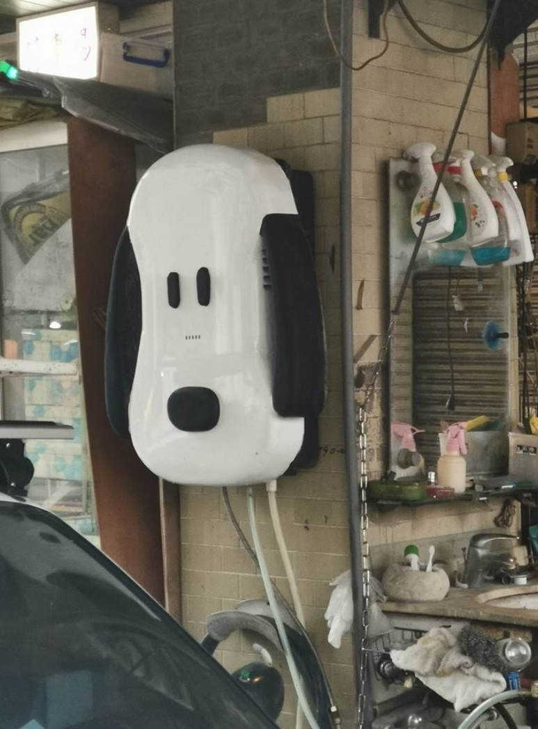 ▼照片可以看見水電師傅的終極創意,本來只是一台普通掛在柱子上的白色熱水器,沒想到他在左右兩邊加裝上2條黑色裝飾後,當初變出史努比的黑色大耳朵~接著在正面又裝了3個黑色橢圓形擺飾,瞬間神還原!