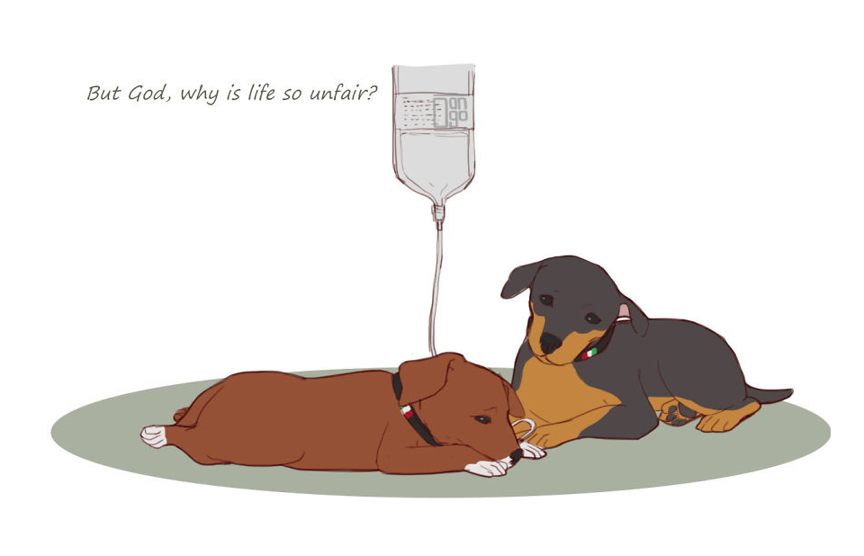 愛狗的人越來越多。很多好心人看到可憐的浪浪,會將牠們帶回家照顧,或找人領養,卻忘了給毛孩注射疫苗,這可能會造成很多悲劇。越南一名網友領養了2隻幾個月大的狗狗,因為救助人的疏忽,2個小天使罹患犬瘟熱離開了世界。他將狗狗生命中最後一段旅程畫了下來,也希望更多人注意到越南流浪動物救助的窘境。