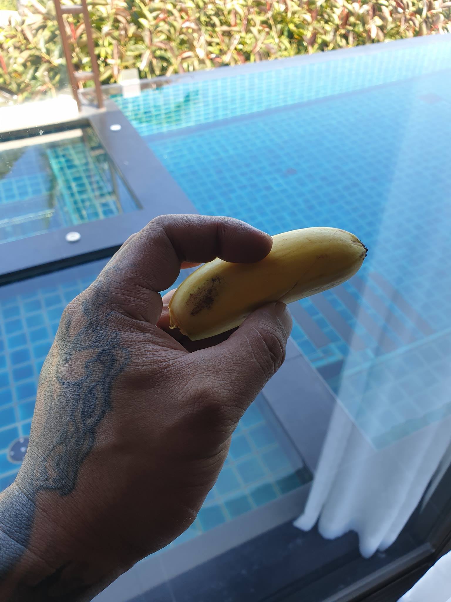 ▼他再度假時還不忘鬧粉絲,說看到這根香蕉「好想在台灣的你們」。