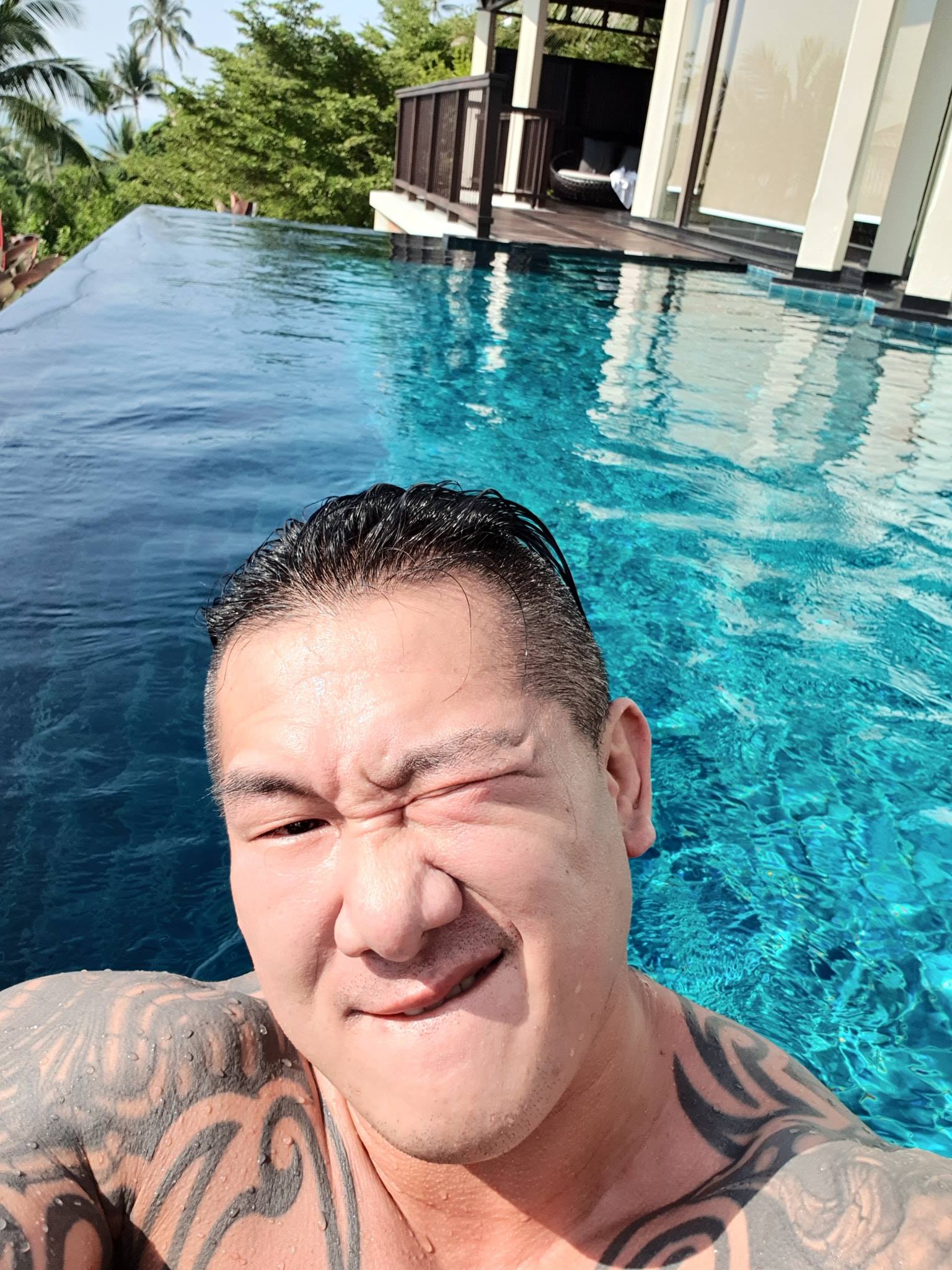 ▼就算花了那麼多錢,館長一點也沒有擔心~反而還曬出在無邊際泳池自拍的照片,以「美男魚」姿態更大家分享度假日常,非常愜意。