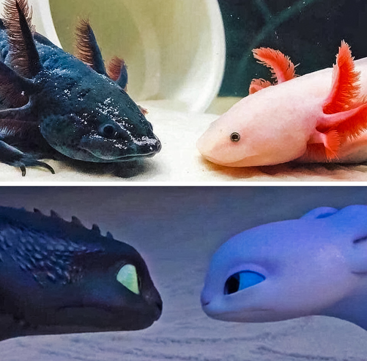 ▼兩種不同形態的墨西哥蠑螈,看起來就像是《馴龍高手》中的畫面。