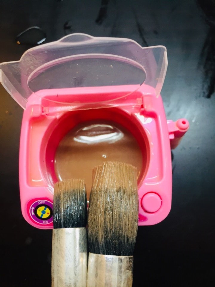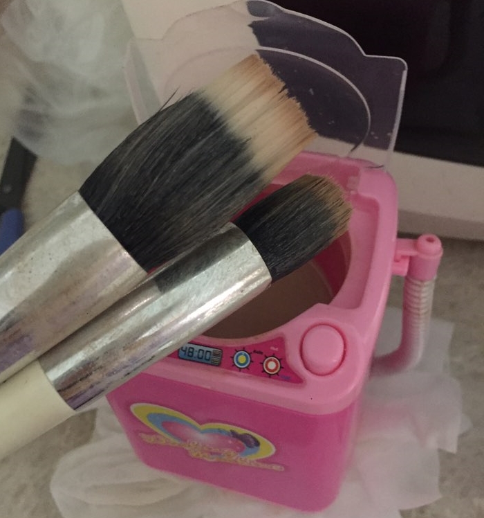 ▼看著原本清澈的清洗劑慢慢變色,化妝刷瘋狂轉圈,竟然有一種詭異的紓壓感。