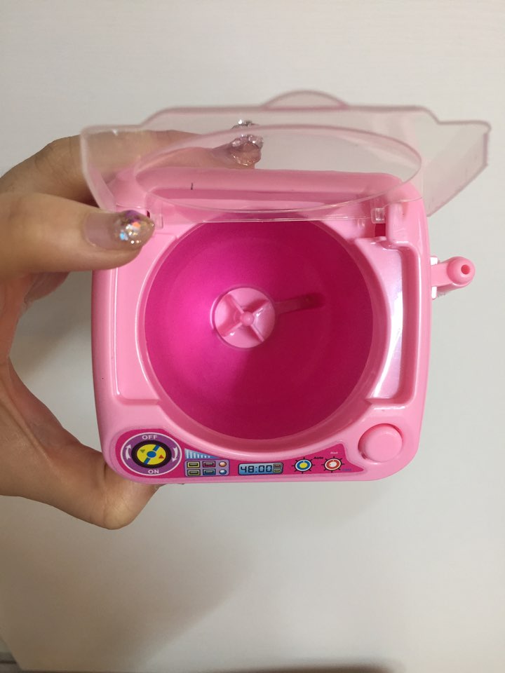 在梳妝台上擺一個玩具洗衣機,感覺萌萌的。因為是玩具,它的品質非常一般,但價格便宜,而且真的很實用,各位小仙女要不要買一台呢?