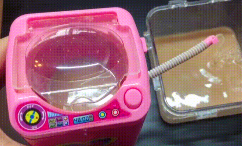 ▼清洗化妝刷看起來簡單,其實很枯燥,畢竟只浸泡的話洗不乾淨,還要花時間認真清理。用這款玩具洗衣機洗化妝刷,輕鬆又有趣。