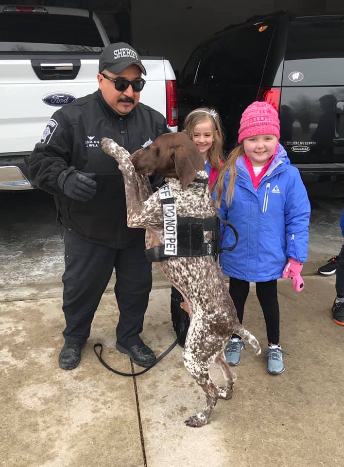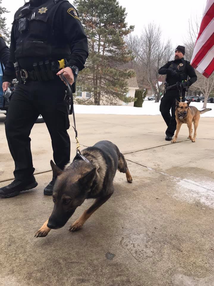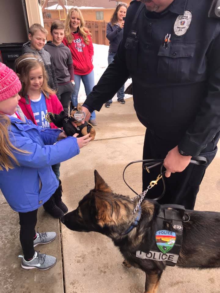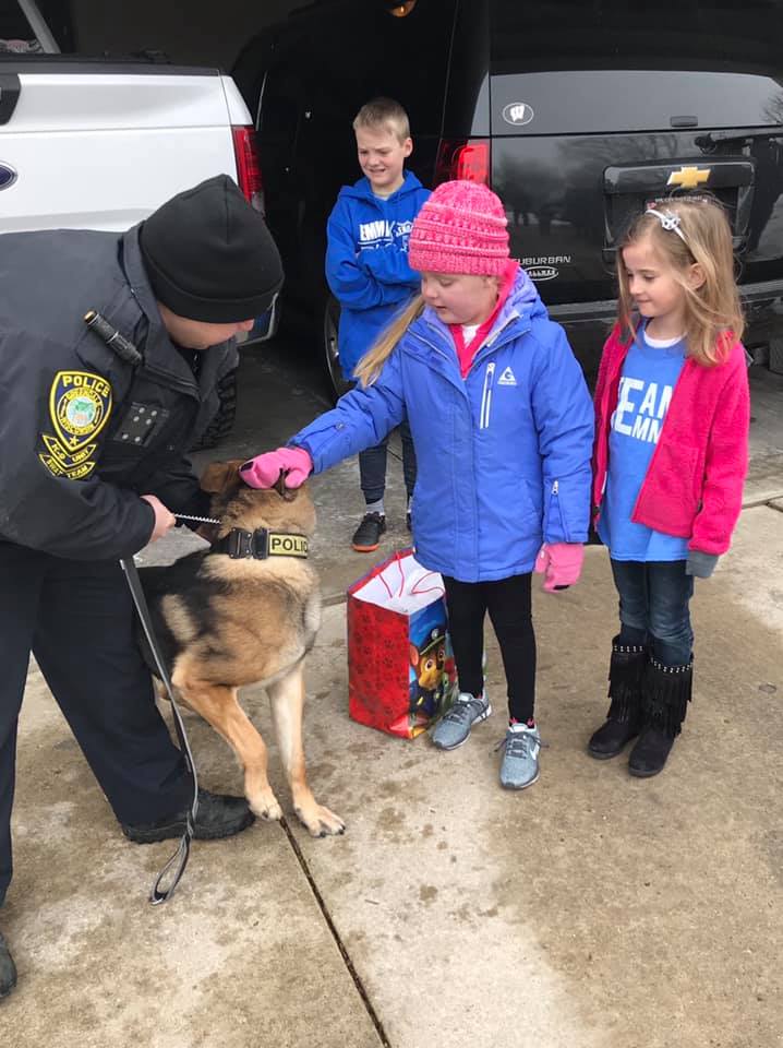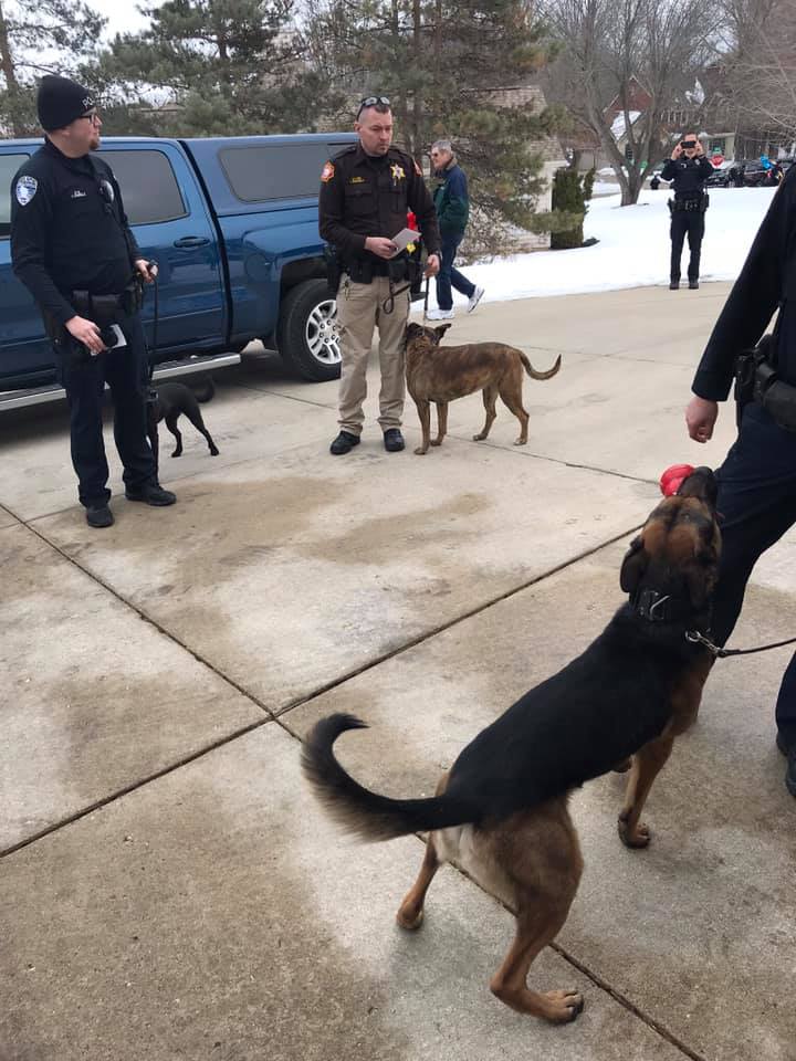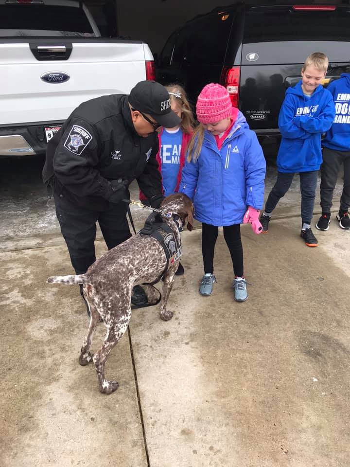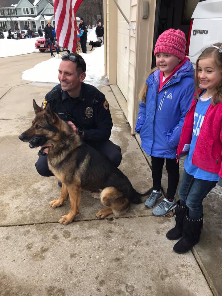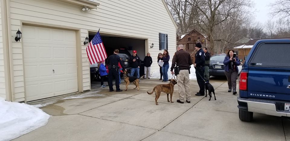 ▼而當地的哈特福德警察局(Hartford Police Department)在網路上看到網友的分享後,也決定要出力幫助Emma!他們的驚喜就是帶著K-9警犬隊直接到她家門口!