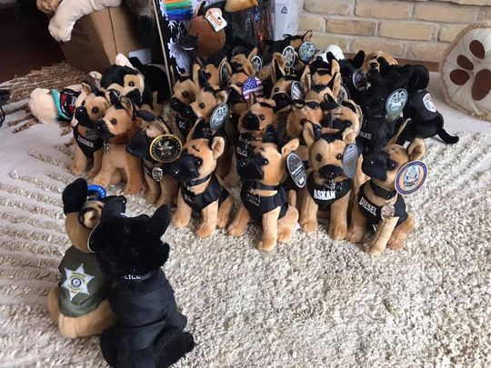 7歲腦瘤女童很想看毛孩 警察先生一次帶「40隻激萌警犬」送到她面前