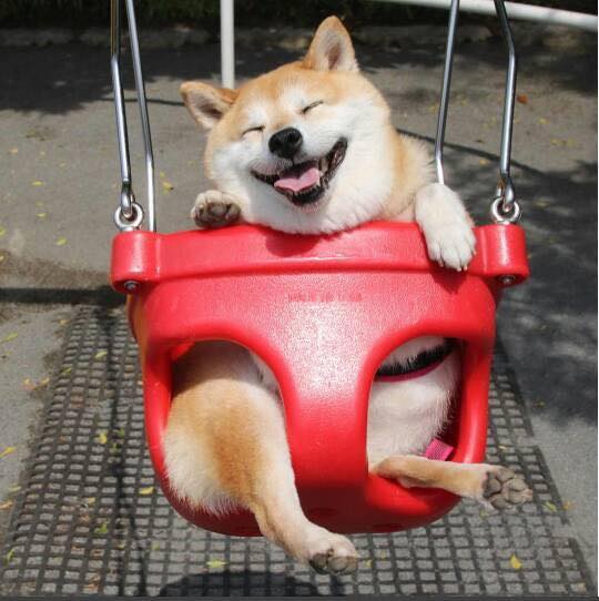 ▼柴柴大笑時眼睛都瞇起來了,好可愛啊。