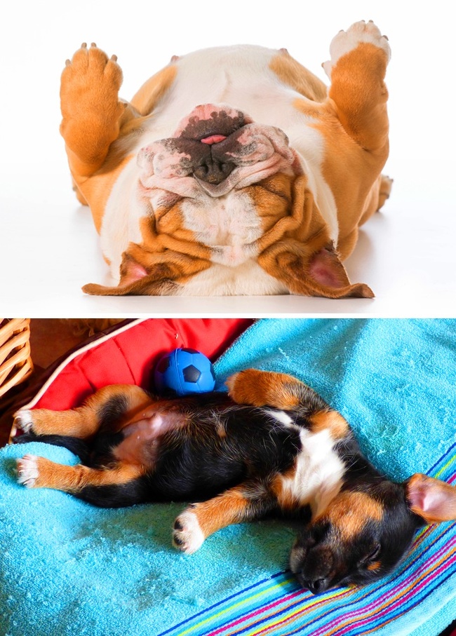 ▼不省人事的睡姿:會用如此豪邁睡姿的狗狗,基本上已經是放下了所有的戒備倒頭大睡,因為肚子等脆弱的部位,如果狗狗沒有足夠的信心是不會露出來的。這樣的狗狗一般上充滿了自信,與主人的關係就像朋友一樣親密。
