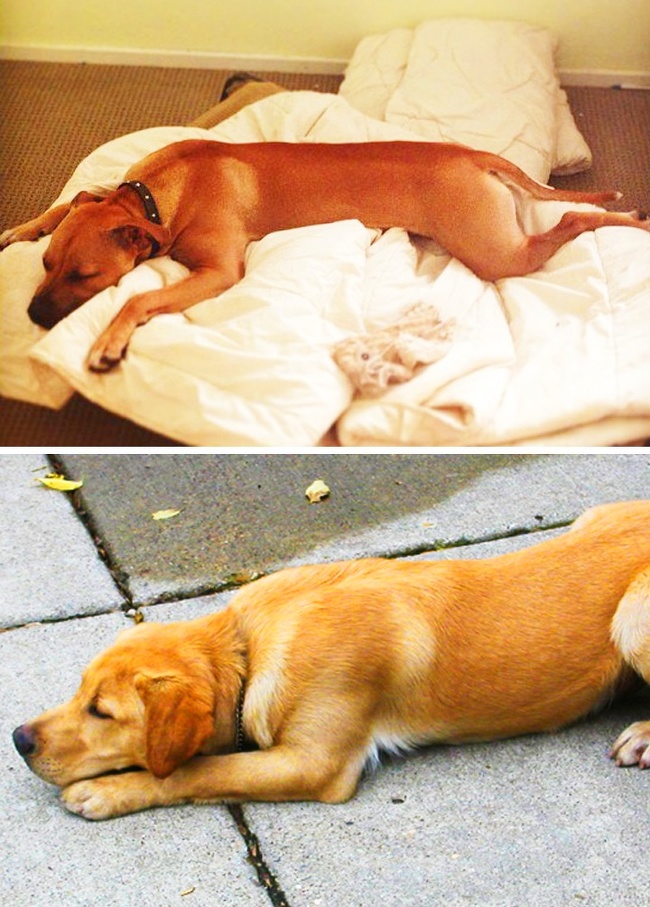 ▼拱橋式睡姿:會睡成這個樣子的狗狗,一般上都是真的太累,連改變姿勢也不想了。這樣的狗狗一般上都是喜歡隨心所欲,和主人總是形影不離的跟屁蟲!