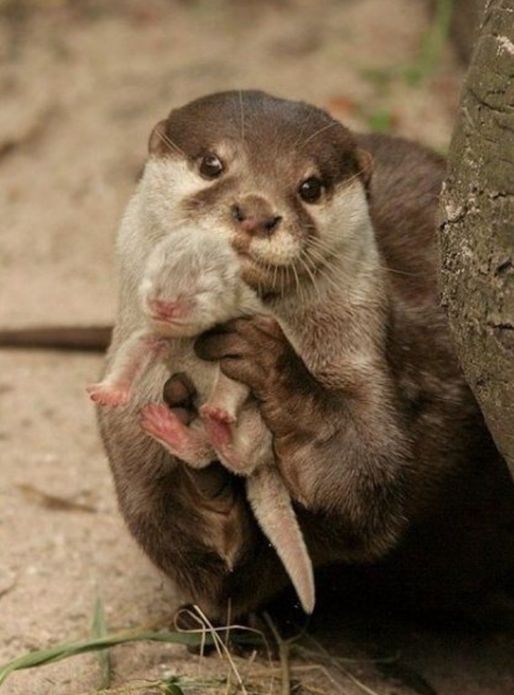 ▼當水獺面臨危險時,牠們會將嬰兒展示出來,希望對方能大發慈悲放牠一馬。
