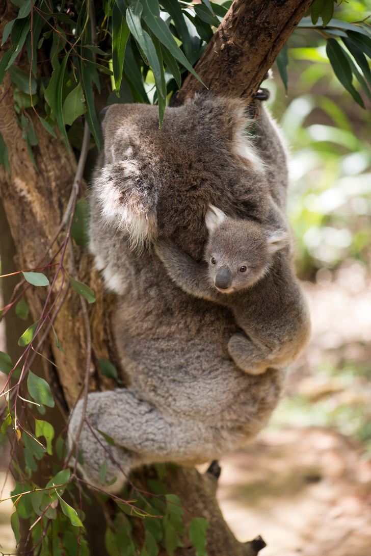 ▼當無尾熊寶寶的體積已經超出無尾熊媽媽的育兒袋時,媽媽會選擇背著牠。