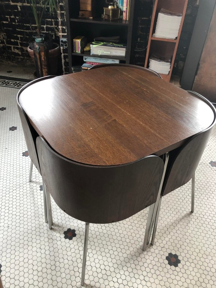 ▼讓四張椅子完全融入桌子下的設計。