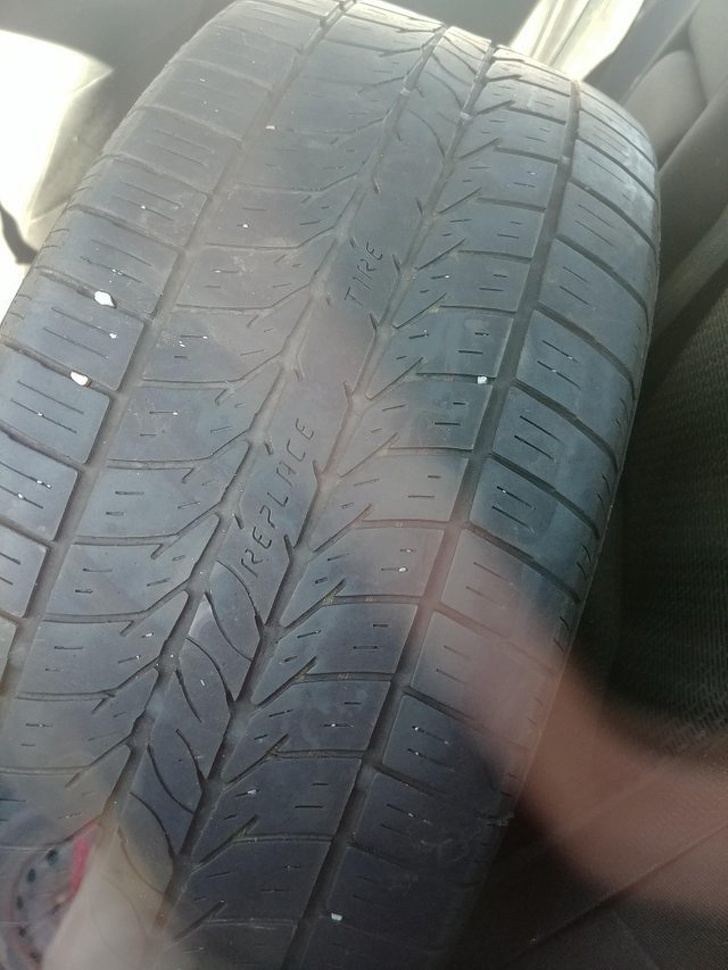 ▼在經過一定時間的磨損,這個輪胎上會出現「更換輪胎」的字眼。
