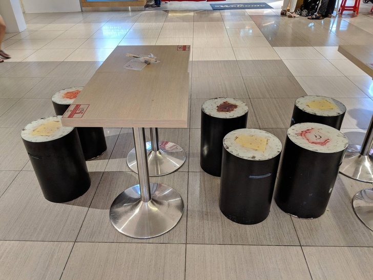 ▼壽司餐廳的椅子,是壽司卷的樣子!