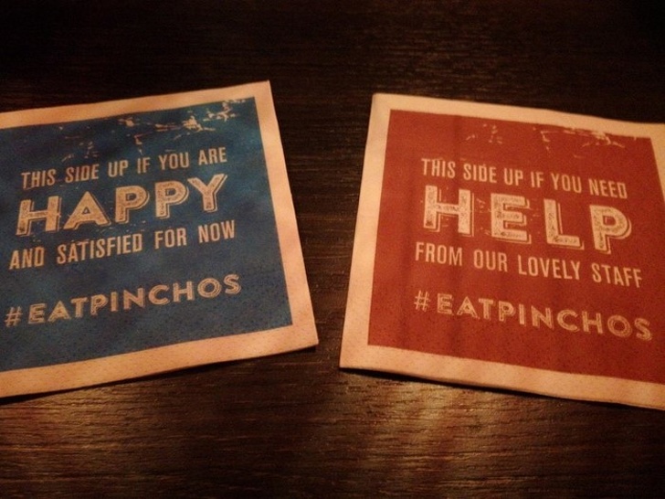 ▼這家餐廳的餐巾有兩面,讓你能夠含蓄的表示心情: