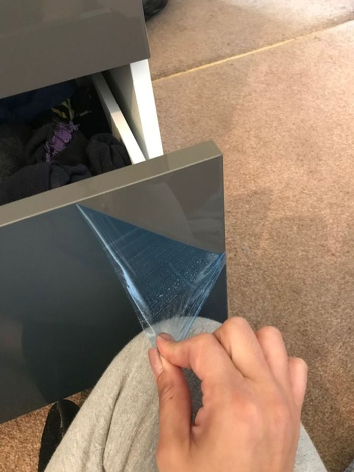 ▼Kayleigh一開始還以為自己毀了抽屜櫃!但是仔細再看一眼…藍色的部分原來只是保護膜啊!當年居然完全沒發現!