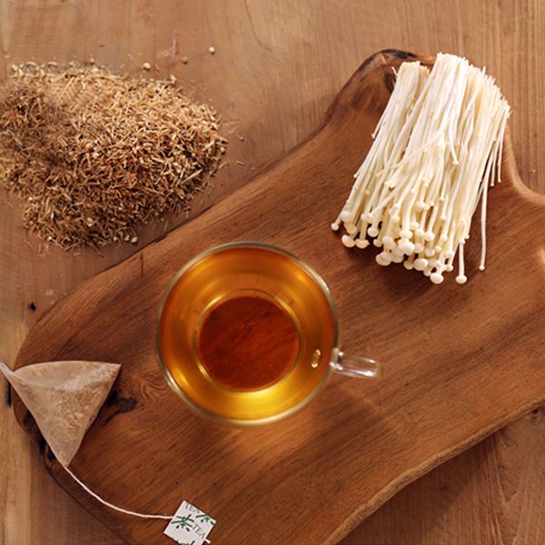 1.切除金針菇根部並撕開,200公克的金針菇可以做成4天茶量。