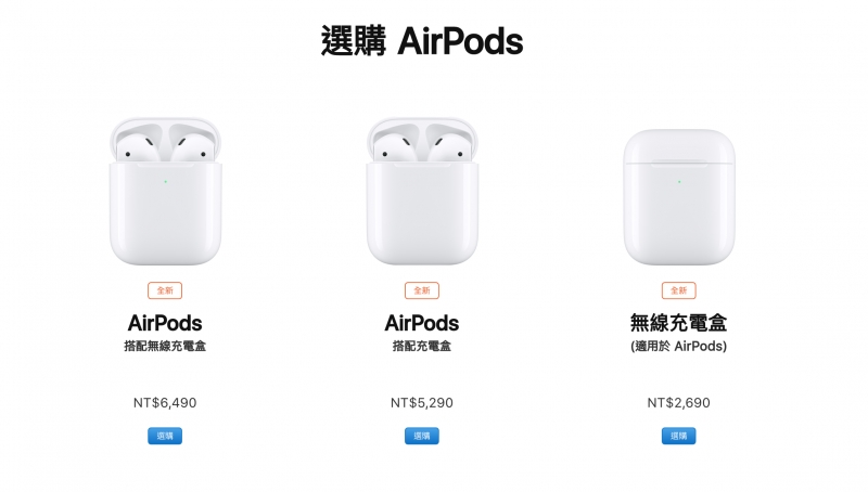 ▼據台灣蘋果官網所示,AirPods 2搭配標準充電盒,售價台幣5290元。AirPods 2搭配無線充電盒,售價台幣6490元。也可單獨購買無線充電盒,售價台幣2690元。