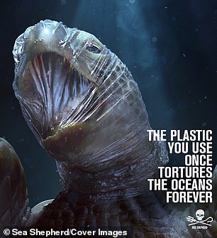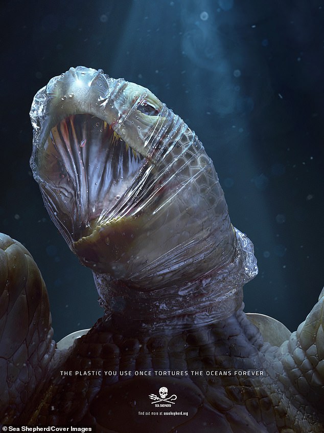 ▼每年都有很多海洋動物因為塑膠垃圾失去生命,牠們或吞下大量塑膠垃圾,或被塑膠製品纏繞,活得痛苦不堪,最後在絕望中離開世界。但廣告中的圖像卻不是真實拍攝的。