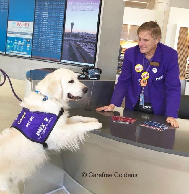 ▼鳳凰城機場在2017年推出「領航朋友」(Navigator Buddies)的「機場治癒犬」計畫,希望透過狗狗的陪伴,能夠為乘客們減緩焦慮,舒緩情緒。