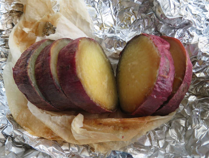 ▼每根地瓜只要100日圓,客人先將錢投放到旁邊的投幣口,就可以在狗狗前方的箱子拿出地瓜了。