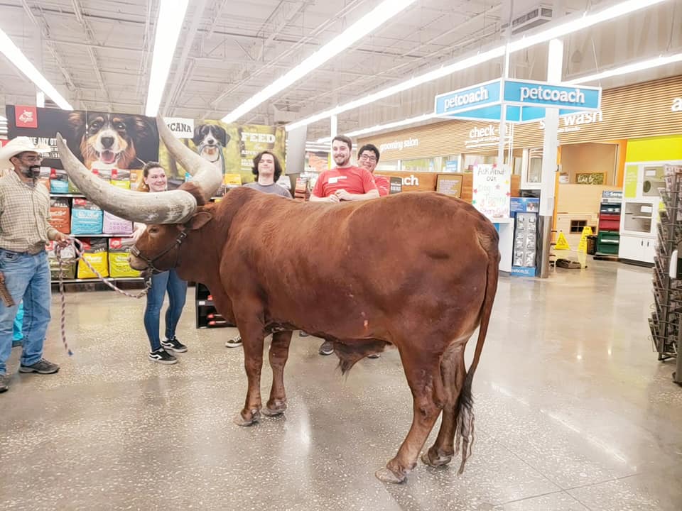 2019年03月25日隨著全世界飼養寵物的風氣越來越盛行,許多商店也開始標榜各種「寵物友善」的口號,吸引飼主帶著寵物一起來消費。美國德州就有一家寵物用品店「Petco」開幕,店家喊出「只要有牽繩,歡迎飼主帶寵物進來逛」,讓一名飼養非洲長角牛的牛仔,決定帶著重達725公斤的「寵物」上門挑戰!