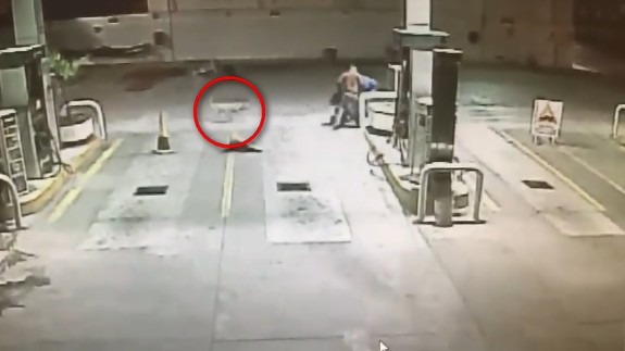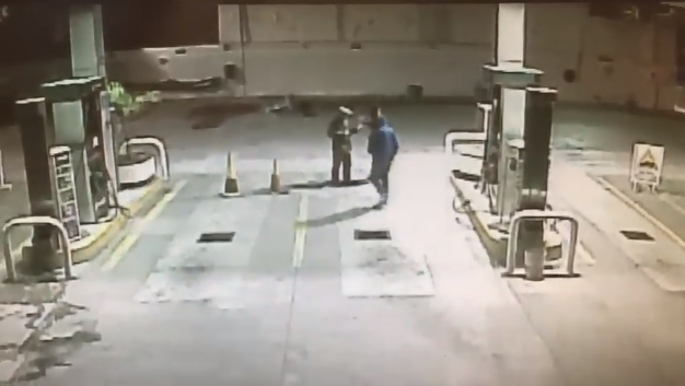 ▼事發當日,有兩名歹徒在清晨時分來到加油站,想要洗劫獨自工作的 Herald,還將他打倒在地。