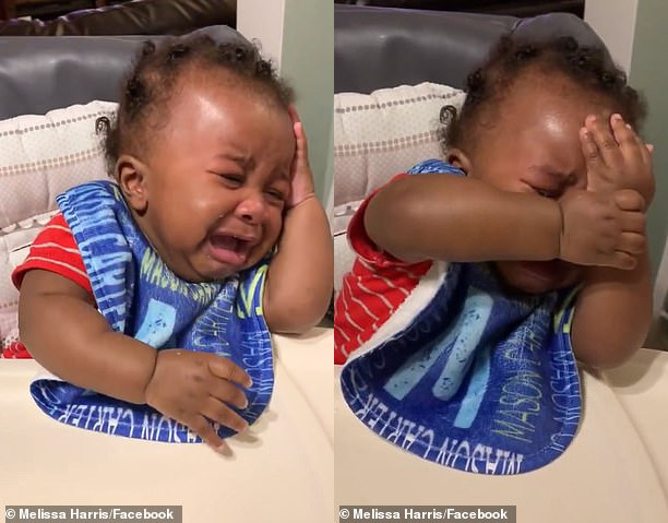 ▼盯著看了爸爸2秒後,寶寶終於忍不住了,扭過頭去扶額大哭。
