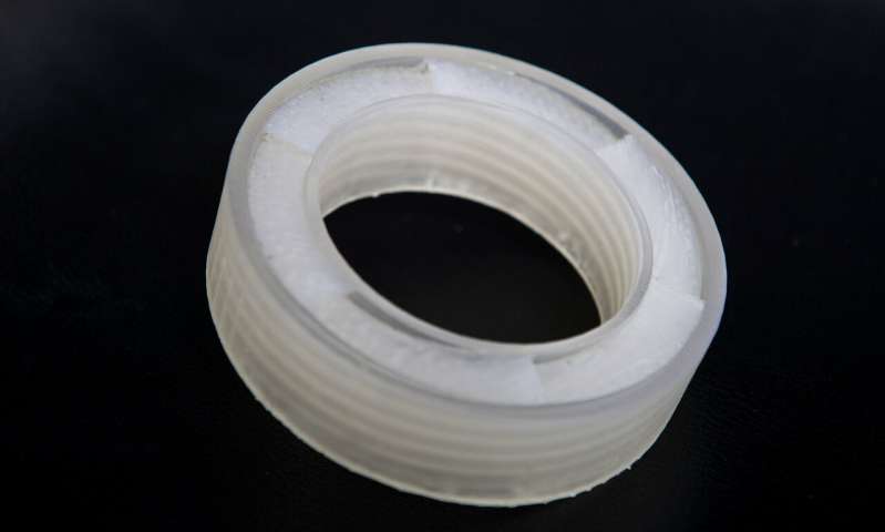 ▼想保證空氣流通,就要採用中空的設計。研究人員先通過數學和電腦模擬算出精準角度的環形結構,看起來就像甜甜圈。這種結構能夠將聲波反彈出去,聲波並沒有消失,只是遠離耳朵。