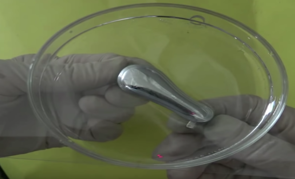 ▼研究人員表示,他們在鎵中加入鐵和鎳,以及一種浸入鹽酸的錫合金,成功大幅降低表面張力,讓材料可以拉伸至其靜置長度的四倍。